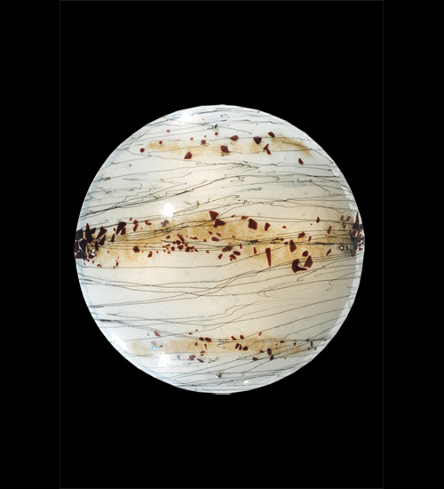 Italian for small branches or twigs. The Ramoscelli pendant features an abstract expressionist lighting design. Inspired by bare trees against a Winter White sky, this shade highlights Fused Glass. White iridescent glass is fused with Black Twig-like streamers, Plum-colored accents and Bronze Frit. The fixture is enhanced with a Brushed Nickel powder coat. Overall height ranges from 22 to 74 inches as the aircraft cable length can be easily adjusted in the field. Traditional workmanship, high fire kilns and original tools are used to fuse glass in our 180,000 square foot manufacturing facility in Yorkville, NY.