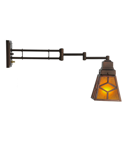 Simple clean lines and a geometric shape are the hallmark of this Mission styled wall fixture. A stunning Amber Mica shade features an attractive diamond pattern with handsome hardware finished in Mahogany Bronze. Ideal for illuminating bedsides and other spaces for reading. The swing arm adjusts horizontally from 5 to 14 inches in width and adjusts the depth from 10.5 to 21 inches from the wall. UL and cUL listed for dry and damp locations.