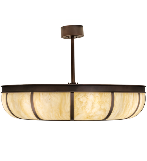 A fan-tastic, energy efficient decorating idea for a home, retail or hospitality location, this custom crafted Chandel-Air features a stunning Botticino Idalight lens with a frame, hardware and decorative accents depicted in a Mahogany Bronze finish. This modern marvel combines a ceiling fan with a handsome lighting fixture that includes 8 inner lights for decorative illumination that brings out the beauty of Idalight. Handcrafted in Yorkville, New York by Meyda artisans, this energy saving Arts & Crafts inspired ""Chandel-Air"" creates a windchill to keep the space cool in the summer, and is reversed in the winter to push down hot air and maintain warmth. Dimmable energy efficient lamping options, as well as custom sizes, styles and colors, are available. The fixture is UL and cUL listed for damp and dry locations.