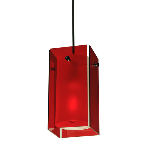 Make a dramatic design statement with our Red Quadrato Pendant, created with a blown glass cylinder that is available in frost or white and surrounded by decorative art glass in a rectangular shape. Ideal for suspension over a bar, kitchen island, retail counter, dining table and a broad range of residential or commercial installations. Handcrafted of Black finished hardware in the USA.