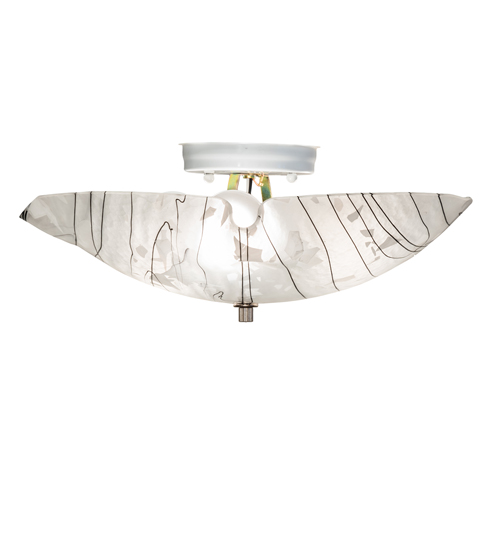 This elegant Atelier Branches organic-styled shade is the result of high-fired White Glass Fused with Black Streamers. The Wrinkle-styled fixture, which includes hardware featured in a Nickel finish, is the perfect centerpiece for any room. It is a true work of art. Ideal for homes, modern restaurants, and those that appreciate a work of beauty. Traditional artistry, high-fire kilns, and original tools are used to fuse art glass in the old world tradition and inspired by modern homes from Westchester County, New York, to Highland Park, Chicago, Illinois, to Northern California. The Atelier Branches Organic Flushmount is featured in our American-made, American-designed, handcrafted Fused Glass Lighting Collection. UL and cUL listed for dry and damp locations. Each shade is a unique work of art with color variations based on natural ingredients inherent in the glass. Please get in touch with us if color matching is critical when ordering multiple items.