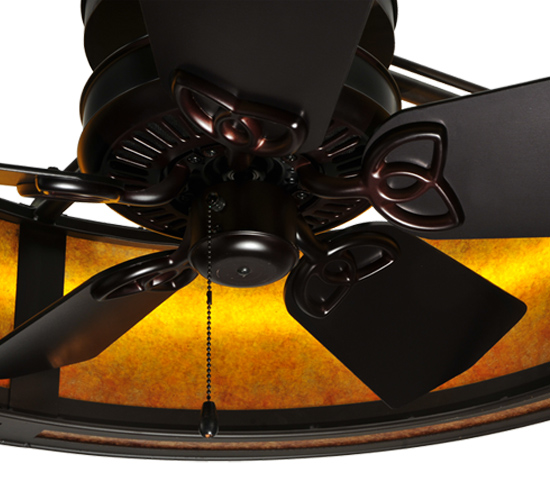 A fan-tastic and energy efficient decorating idea for a home, retailer or hospitality location, this Meyda "Chandel-Air" combines a ceiling fan with a handsome Amber mica diffuser. A famed Smythe Craftsman design, hand finished in Oil Rubbed Bronze, is featured on the outside of this stunning pendant/fan fixture. This unique design is the first Chandel-Air engineered with LEDs (light emitting diodes) which eliminate bulb replacement, reduce energy costs and has a lamp life to 50,000 Hours! Handcrafted in Yorkville, New York by highly skilled Meyda artisans. This energy saving "Chandel-Air" can be used to pull hot air up and keep the space cool in the summer, and reversed in the winter to push down hot air and maintain warmth. UL listed for damp locations.