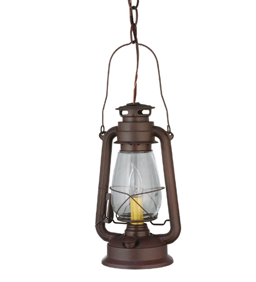 Reminiscent of days of yore, the Meyda Miners Lantern is perfect for a variety of indoor and outdoor applications in a home, restaurant, retail store or hotel. A classic, nostalgic design with an electric candlelight inside. Hand finished in Mahogany Bronze with a Clear Glass chimney shade. Handcrafted by Meyda artisans in the USA. The pendant includes 3 feet of chain and 4 feet of wire.