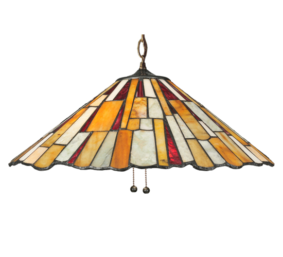 Thinly hand carved and polished natural Jadestone in earthy tones of Moss Green, Tan, Natural Ivory and Coral become luminescent in this unique tile patterned shade. The natural stone shade is crafted using the famous copperfoil construction process that creates Tiffany stained glass lamps and fixtures. Pendant hardware is featured in a handsome Mahogany Bronze finish. Ideal for placement over a kitchen island, counter or dining table
