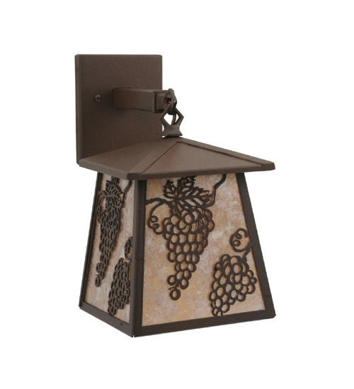 Bold bunches of grapes accent this handsome American Craftsman lantern. The fixtures are powder coat finished in Cafe Noir and designed with stunning Silver Mica panels. Ideal for illuminating landscapes, patios, porches, walking paths, and a broad range of outdoor and interior spaces. Handcrafted in the USA by skilled Meyda artisans. Energy efficient lamping options available. UL Listed for wet locations.