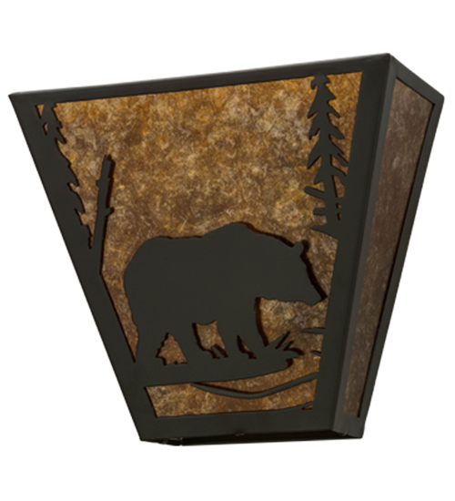 Drawing inspiration from wildlife and the beauty of nature, this stunning fixture depicts a majestic Bear meandering through the woodlands as the morning sun rises in the background. Warm ambient light is evoked through stunning Amber Mica, complemented by a frame and hardware featuring a Timeless Bronze finish. See the matching wall fixture, model 169334, the Bear Creek Left Wall Sconce. The Bear Creek Right Wall Sconce is included in our American-made, American-designed, handcrafted Wildlife Collection and manufactured in Yorkville, New York. UL and cUL listed for dry and damp locations. Upstate New York's adventurous playland, known as the Adirondack Mountains, with its many breathtaking forests, lakes, and rivers, is the spiritual birthplace of Meyda and inspires our rustic-themed mica collections.