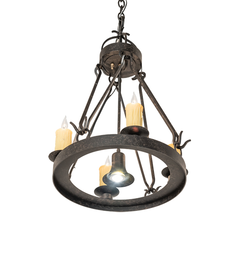 Blending an exquisite style with a rich distinguished look, the Lakeshore features a Coffee Bean finished steel ring that provides timeless beauty and beautiful illumination. A total of 4 Amber faux candlelights perched on bobeches, and complemented with a downlight for functional illumination on surfaces below. This chandelier is ideal for illuminating dining areas, conference tables, lobbies and other residential and hospitality spaces. The fixture is UL and cUL listed for damp and dry locations.