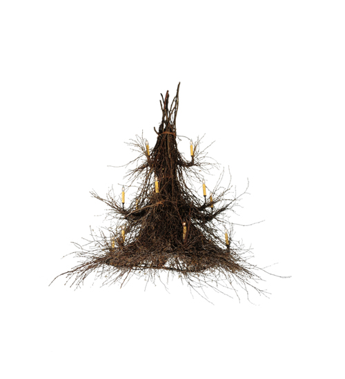 Bring Mother Nature into your home with Natural Hickory and Birchwood Twigs and Branches intertwined to create this massive chandelier at 6 feet wide and 7 feet tall. 15 Ivory faux candlelights appear to bud and grow from twigs and branches sustainably harvested by hand from low-hanging, tree-friendly sun growth in the Adirondack mountains. The chandelier is enhanced with a warm Mahogany Bronze finish. The chandelier is perfect for large residential, restaurants, inns, lodges and retail applications, as well as stunning decor for wedding venues. The overall height ranges from 88 to 208 inches as the chain length can be easily adjusted in the field to accommodate your specific lighting application needs. Handcrafted in our 180,000 square foot manufacturing facility in Yorkville, New York. Candlelight colors, metal finishes and fixture sizes can be customized to your needs. UL and cUL listed for dry and damp locations.