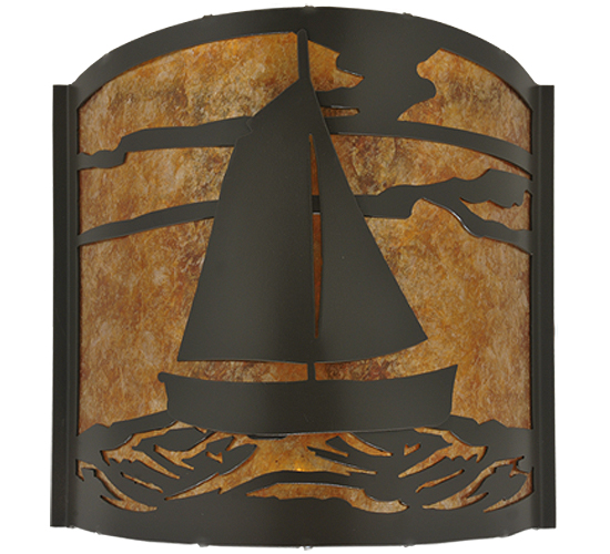 May the wind be always at your back as this boat sails windward out on the sea and is captured beautifully in this charming wall sconce design. Soft ambient light shines through Amber Mica, which is complemented with a frame, decorative accents and hardware featured in a Timeless Bronze finish. The Sailboat Wall Sconce is featured in our American made, American designed Nautical Lighting Collection. Manufactured in Yorkville, New York. UL and cUL listed for dry and damp locations.