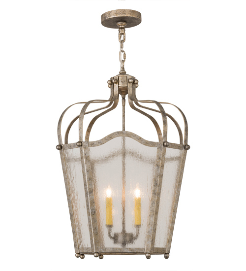Utilizing a blend of timeless craftsmanship and classic design, the ever-popular Citadel brings home unsurpassed quality and shapely appeal. Evoking a dramatic effect, beautiful ambient light is evoked through Clear Seeded Glass which reveals a 4-light faux candelabras featured within this pendant. Citadel is enhanced with a dramatic design and frame featured in a Corinth finish. The fixture is handcrafted by skilled artisans in our American factory in Upstate New York. Custom options include various sizes, colors, designs and dimmable energy efficient lamping. UL and cUL listed.