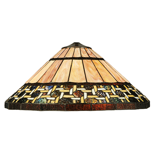 Named for the Greek word for light, Ilona will stir conversations among family and friends with a dramatic Honey and Beige colored knotwork design on Wispy Blue/Green Rippled glass. The lamp shade's background includes Beige, Mauve and Purple art glass while Root Beer colored glass borders enhance the beauty of this exquisite art glass shade, which is created using Meyda Tiffany's famous copperfoil construction process. The floor base is finished in a warm Mahogany Bronze.