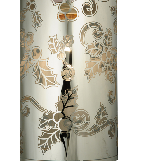Charming silhouettes of holiday mistletoe and holly illuminate brilliantly in this delightful lighting design. This Chrome finished Solid Iron cylindrical mini pendant is perfect when placed in a row above an island, counter, bar or dining table for a wide range of lighting applications.
