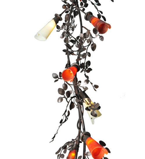 Ideal for accenting walls and ceilings in many residential, retail and hospitality settings, the Vinca Vine chandelier features 12 dimmable Trumpet Flower Idalight shades in hues of Red, Amber and White with a gracefully designed vine and delicate leaves hand finished in a handsome Copper Rust. Handcrafted in the USA by highly skilled artisans at the foothills of the Adirondack Mountains in Upstate New York, the fixture is offered in custom styles, colors and sizes are available. Energy efficient lamping options are available. UL and cUL listed for damp and dry locations.