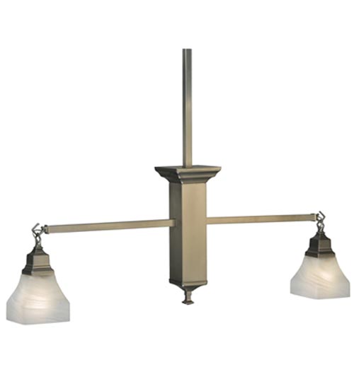 The Bungalow design embodies the ideal of the American home. The casual cozy look of a lustrous Brushed Nickel finish with two White Alabaster swirl glass shades make this versatile ceiling fixture suitable for countless applications. Ideal for illuminating dining tables, counters and kitchen islands. UL and cUL listed for dry and damp locations.