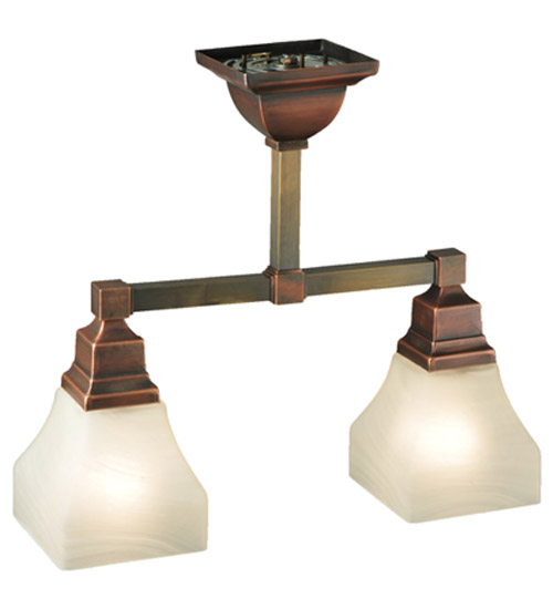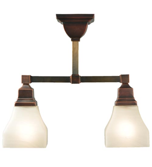 This classic Bungalow design embodies the ideal of the American home. The casual cozy look of a Burnished Copper finish with two White Alabaster swirl glass shades make this versatile ceiling fixture suitable for countless applications. Ideal for illuminating dining tables, counters and kitchen islands. UL and cUL listed for dry and damp locations.
