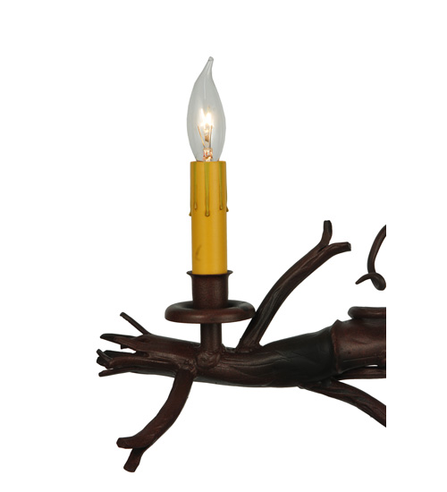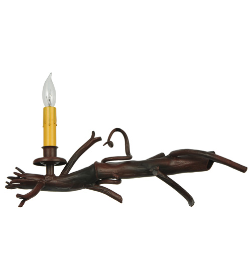 Naturally inspired charm is defined with woodland branch styled base for a single faux Amber candlelight perched on a bobeche above. The pendant features barkerized hardware and branch like accents featured in a Rustic finish. The fixture is custom crafted in Upstate New York, at the foothills of the spectacular Adirondack Mountains. Custom sizes, styles, colors and dimmable energy efficient lamping options are available. The lamp is UL and cUL listed for damp and dry locations.