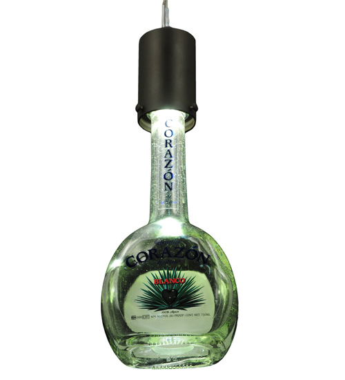 Capture the life of the party with the whimsical design of this Corazon Tequila Bottle Mini Pendant. Liven up a restaurant, club, or home with a lighting fixture that does so much more than deliver light; it adds personality and pizzazz. Connoisseurs will appreciate this pendant for its fine detail and charm. This Personalized Corazon Mini Pendant is included in our American-made, American-designed, handcrafted Liquor Bottle Lighting Collection. The fixture is manufactured in Yorkville, New York. UL and cUL listed for dry and damp locations. Take your finest liquor bottle, and Meyda will transform it into an everlasting personalized light fixture. Contact us for more information on custom wine or liquor bottle lighting fixtures and lamps. We can also create custom lighting with beer bottles, mason jars, milk bottles, and other glass containers and vessels.