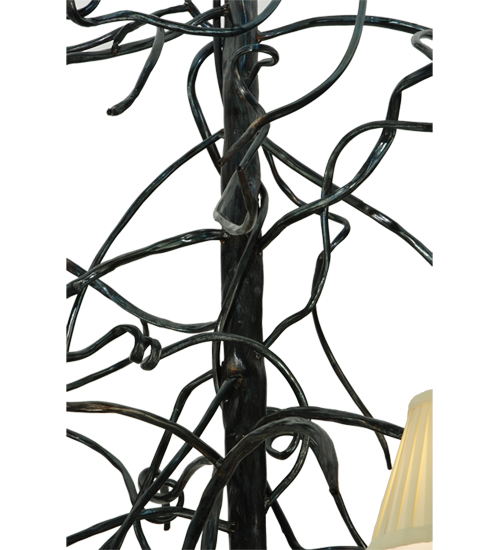 Like a wise old tree asleep in the cold winter woods, the Winter Solstice chandelier is an abstract expression of light that is perfectly poetic. Intricacies abound with long Hand Wrought Iron finished branches hibernating until the light from Creamy colored Natural Linen shades on bobeches provides a warm embrace. Custom crafted by Meyda artisans at the foothills of New York's Adirondacks, the fixture is a unique Nature-inspired lighting design. Custom options available. UL and cUL listed for damp and dry locations.