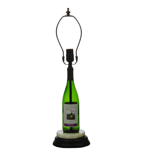 Create a stunning design statement by adding an attractive shade and placing?this table lamp base in a picture window or other spaces in homes, restaurants, hotels, pubs, nightclubs, and wineries. Connoisseurs will appreciate the fine detail and charm of this lamp base, which was created with a customer-supplied wine bottle. This Personalized Wine Bottle Table Base is included in our American-made, American-designed, handcrafted Wine Bottle Lighting Collection. The base is manufactured in Yorkville, New York. Take your finest bottle of wine, and Meyda will transform it into an everlasting personalized lamp base or light fixture. Contact us for more information on custom wine bottle lighting fixtures and lamps. We can also create custom lighting with beer and whiskey bottles, mason jars, milk bottles, and other glass containers and vessels.