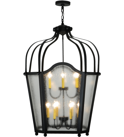 Utilizing a blend of timeless craftsmanship and classic design, the ever-popular Citadel brings home unsurpassed quality and shapely appeal. Evoking a dramatic effect, beautiful ambient light is evoked through Clear Seeded Glass which reveals two 6-light faux candelabras featured within this pendant. Citadel is enhanced with a dramatic design and frame featured in a Blackwash finish. The fixture is handcrafted by skilled artisans in our American 180,000 square foot factory in Yorkville, New York. Custom options include various sizes, colors, designs and dimmable energy efficient lamping. UL and cUL listed.