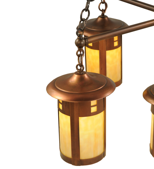 Handcrafted from Brass with stunning rustic beauty. This sophisticated stylish chandelier features two tiers with 5 Beige Art Glass shades that are enhanced with a Shiny Auburn finish. Overall height ranges from 31 to 54 inches as the chains can be adjusted in the field to meet your application needs. Ideal for illuminating entryways, lobbies and other fine residential, hospitality and commercial settings. Made to Order in our 180,000 sq ft US manufacturing facility in Yorkville, NY at the foothills of the Adirondack Mountains. Customize lantern styles and materials, metal finishes and chandelier sizes to your taste. UL and cUL listed for dry, damp and wet locations.
