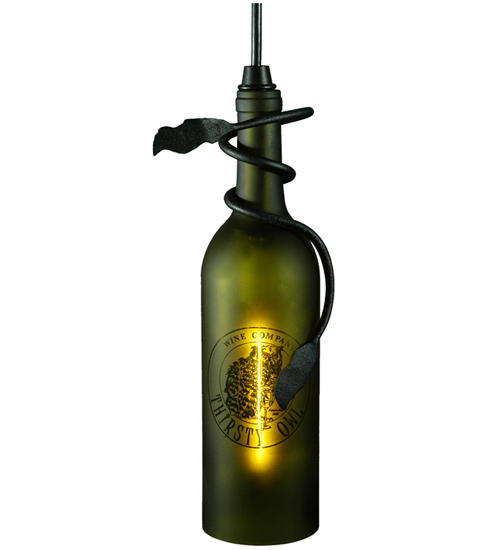 Capture the life of the party with the whimsical design of the Meyda Wine Bottle Mini Pendant, which is personalized with the Thirsty Owl logo and name. It is so much fun that you may want to hang from it, but don't! Liven up a restaurant, club, or home with a mini pendant that does so much more than deliver light; it adds personality and pizzazz. The Green Glass Wine Bottle is embraced by a Black suspension cord and Textured Black vine-like accents and hardware. Create a stunning design statement by placing a group of mini pendants across an island, table, counter, or bar in homes, restaurants, hotels, pubs, nightclubs, and wineries. Connoisseurs will appreciate this mini pendant for its fine detail and charm. The overall height ranges from 14 to 76 inches, as the cord can be adjusted on location to meet your exact lighting requirements. This Personalized Thirsty Owl Wine Bottle Mini Pendant is included in our American-made, American-designed, handcrafted Wine Bottle Lighting Collection. The fixture is manufactured in Yorkville, New York, and is UL and cUL listed for dry and damp locations. Take your finest bottle of wine, and Meyda will transform it into an everlasting personalized fixture of light. Contact us for more information on custom wine bottle lighting fixtures and lamps. We can also create custom lighting with beer bottles, mason jars, milk bottles, and other glass containers and vessels.