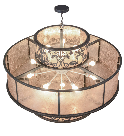 An exquisite four tier pendant features stunning Silver Mica diffusers with the top and third tiers accentuated with a floral and scroll design in an Antique Iron Gate finish. This luxurious pendant illuminates with energy efficient LEDs supplied by the owner. Custom crafted at our manufacturing facility in the USA, this fixture is available in custom sizes, styles and colors, as well as dimmable energy efficient lamping options. The fixture is UL and cUL listed for damp and dry locations.