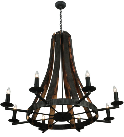 Inspired by Antique Staves traditionally bound by hoops used for beer/whisky barrels and wine casks. This authentic one-of-a-kind chandelier features the Antique Iron Gate finish. Our Sustainable lighting offers a choice of Reclaimed Woods or a combination of Natural Woods/Metals. This vintage look is enhanced with 8 Complementary faux candlelights that line up like soldiers at attention in abeyance of the barrel to which they serve. Overall height ranges from 43 to 112 inches as the chain length can be easily adjusted in the field. Handcrafted in our 180,000 square foot manufacturing facility in Yorkville, NY. Fixture designs, metal finishes and sizes can be customized to meet your needs. UL and cUL listed for damp and dry locations.