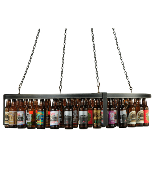 Custom designed as decorative fixtures (6 of them) illuminated from a pre-existing recessed light source, this Multiple Beer Bottle Chandelier was crafted for Stone Brewing's decor to complement general lighting in the space. The customer supplied the beer bottles that were used to build the fixture. We can build custom fixtures inspired by this design with beer bottles and various lighting sources, including LEDs. The Beer Pendant is included in our American-made, American-designed, handmade Wine Bottle Collection and manufactured in Yorkville, NY. UL & cUL listed for dry and damp locations. Contact the Meyda Lighting factory for more info. Featured in Stone Brewing World Bistro & Gardens, San Diego, CA.