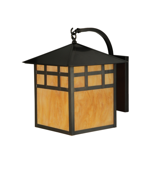 A Windowpane grid is depicted on this handsome American Craftsman lantern style curved arm wall sconce. This stunning wall fixture is finished in Craftsman Brown and features Ambra Siena Idalight diffuser panels. Domestically Produced in our 180,000 square foot manufacturing facility in Yorkville, New York. This Build Your Own lighting series offers fully configurable combinations of lantern styles, functions, fixture sizes and metal finishes to meet your lighting needs. UL and cUL listed for dry, damp and wet locations.