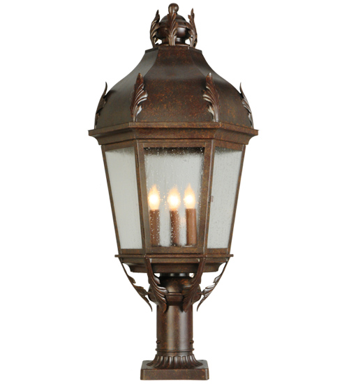 Exquisite charm and sophistication come to light in distinctive style. Enjoy the time-honored look of Royan, an authentic lantern design with classic styling and handcrafted construction. Ideal for indoor and outdoor applications, this shapely pier mount lantern features a Clear Seeded Glass Lens which is complemented with a frame and hardware featured in a handsome Rusty Nail finish. The fixture, which can be mounted directly on to decks, piers and decorative columns, is available in custom colors, designs, sizes and with dimmable energy efficient lamping options such as LED. The 15-inch wide fixture is UL and cUL listed for dry, damp and wet locations.