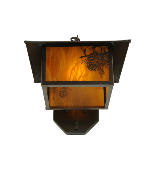 A Winter Pinecone with Pine Needles delicately etched of Solid Brass. Rustic charm comes alive with soft ambient light projected through a stunning Honey Art Glass diffuser. This Nature Inspired Indoor/Outdoor Wall Sconce is complemented with Craftsman Brown finished hardware. Handcrafted by highly skilled artisans in our 180,000 square foot manufacturing facility in Yorkville, New York. Diffuser colors, metal finishes and fixture sizes can be customized to your needs. UL and cUL listed for dry, damp and wet locations.