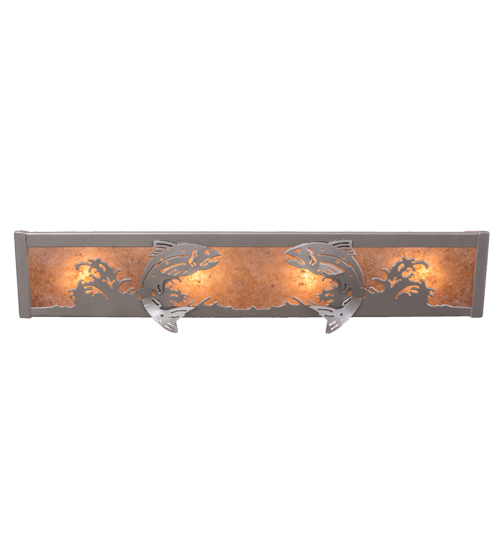 Fish are jumping and swimming about in this striking lighting design. Aptly named Catch of the Day, this American-made fixture captures Trout handcrafted in a Nickel finish while adorning a Silver Mica shade. The luminaire is ideal as a vanity in a bath or a wall sconce in a corridor. The pendant is custom crafted by Meyda artisans at the foothills of the majestic Adirondack Mountain lakes, in New York state. Custom lighting designs, colors and sizes are available, as well as dimmable energy efficient lamping options. The fixture is UL and cUL listed for dry and damp locations.
