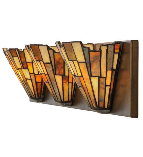 Thinly hand carved and polished natural Jadestone in earthy tones of Moss Green, Tan, Natural Ivory and Coral become luminescent in these unique tile patterned shades and are attached to a backplate finished in Antique Copper. The natural stone shades are crafted using the famous copperfoil construction process that creates Tiffany stained glass lamps and fixtures. Ideal for placement in baths and hallways.
