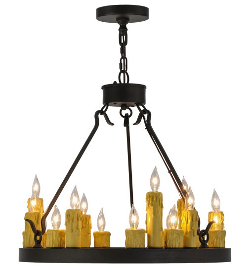 Create a warming, welcoming effect with this distinctive fixture for an entryway, grand dining room or lobby. This exquisite chandelier features the charm of 18 Faux Ivory Candlelights paired with the strength of a solid steel ring shaped frame featured in a Wrought Iron finish. Custom crafted by artisans at our manufacturing facility in the USA, this fixture is available in custom colors, styles and sizes,as well as dimmable, energy efficient lamping. UL and cUL listed for dry and damp locations.