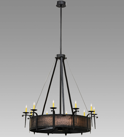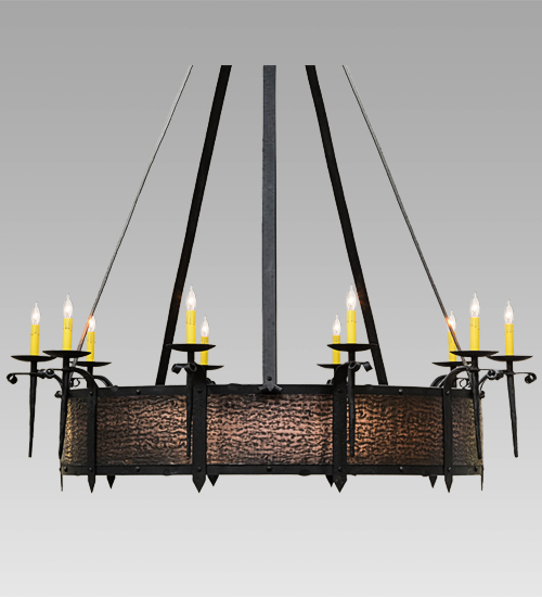 Be the first in your neighborhood to own an innovative Chandel-Air from this award winning collection. A Fan-tastic design that combines a custom lighting design with fan technology. The unique Costello Black finished diffuser is adorned with 10 arms with bobeches and delicate faux candlelights. The hardware Is featured in a Black finish with a Weathered Copper Band. Custom crafted by Meyda artisans in Yorkville, NY.