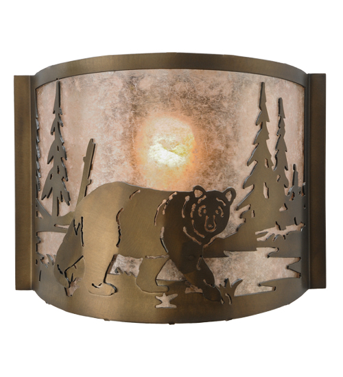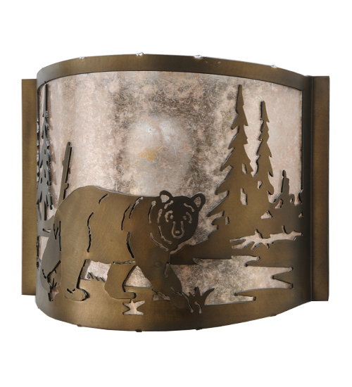 The call of the wild comes to light with a majestic Bear roaming around the woodland lake. Beautiful ambient light shines through the Silver Mica lens while the fixture is enhanced with accents and hardware featured in an Antique Copper finish. The ADA-compliant wall sconce can be installed in dining rooms and entryways in residential, hospitality, and commercial spaces. The Bear at Lake Wall Sconce is featured in our American-made, American-designed, handcrafted Wildlife Lighting Collection. This fixture is manufactured in Yorkville, New York. It is UL and cUL listed for dry and damp locations. Upstate New York's adventurous playland, known as the Adirondack Mountains, with its many breathtaking forests, lakes, and rivers, is the spiritual birthplace of Meyda and inspires our rustic-themed mica collections.