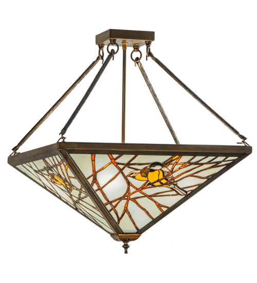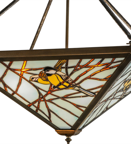 Bark Brown branches across an Azure sky make a pleasant repose for these often seen backyard bird friends. A Meyda original design, the handcrafted stained glass panels are set in an Antique Copper finished frame, handcrafted at our manufacturing facilities in Yorkville, New York, at the foothills of the Adirondack Mountains. Custom colors, designs and sizes available.