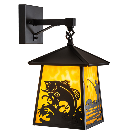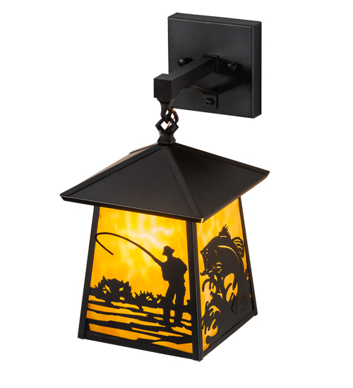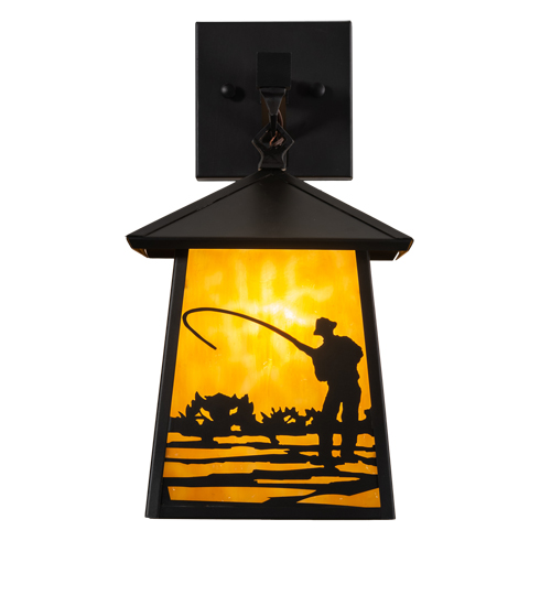 A sportsman and his prize are featured on a mountain creek while the early morning sun rises in the background on this Craftsman styled lantern. Soft ambient light is diffused beautifully through a Beige Flemish Glass lens diffuser which is enhanced with Craftsman Brown finished accents, frame and hardware. Crafted of Solid Brass for fine interior and exterior lighting applications. The Stillwater Fly Fishing Creek Hanging Wall Sconce.is featured in our American designed, handmade Craftsman Signature Series. Manufactured in Yorkville, New York. UL and cUL listed for dry, damp and wet locations.