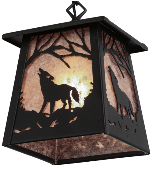 Rustic charm is captured beautifully with this Wolf howling at the moon in the forest in this natural wildlife inspired pendant. Soft ambient light projects through stunning Silver Mica complemented with a frame and hardware featured in Black Textured finish. Ideal for placement over kitchen islands, counters, dining and billiard tables. Handcrafted by Meyda artisans in the USA, in our manufacturing facility at the foothills of the Adirondack Mountains. Custom colors, styles and sizes available. Energy efficient lamping options.