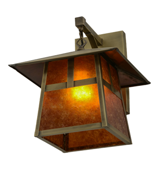Custom crafted of Solid Brass.A Craftsman Signature lantern inspired by the Arts & Crafts movement. The sconce features a classic ??T?? Mission motif on stunning Amber Mica, complemented with hardware finished in Antique Brass. Perfect for hallways, entryways and covered porches. Custom made by Meyda artisans in our manufacturing facility in Yorkville, New York. Custom sizes, styles and colors. Energy efficient lamping options.