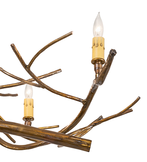 A unique nature inspired decorative look that features rustic charm with an elegant luster. Transparent Gold finished Branches and twigs appear to grow out of stems overhead. Eight Ivory faux candlelights grace the branch-like arms to illuminate a counter, island table or any space where you wish to make a distinctive design statement. Custom crafted by highly skilled artisans in our 180,000 square foot manufacturing facility in Yorkville, New York. Shade styles, metal finishes and pendant sizes can be customized. UL and cUL listed for dry and damp locations.