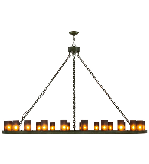 Crafted by the skillful hands of Meyda artisans, the striking Loxley chandelier is topped with 24 Frosted Amber glass candle columns. This transitional fixture is made in the USA with hardware finished in a Tarnished Copper Perfect for residential, hospitality, retail or commercial applications. Custom sizes, styles and colors available. Energy efficient options.