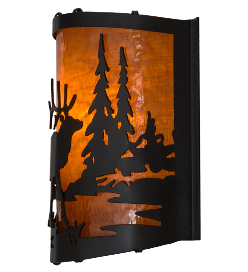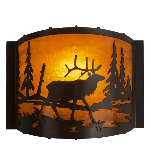 Rustic charm is captured beautifully with this majestic Elk walking by a lake in the forest while the morning sun rises in the background of this natural wildlife inspired sconce. Soft ambient light projects through stunning Honey Wispy art glass, which is complemented with a frame and hardware featured in a Timeless Bronze finish. Handcrafted by Meyda artisans in the USA, in our manufacturing facility at the foothills of the Adirondack Mountains.