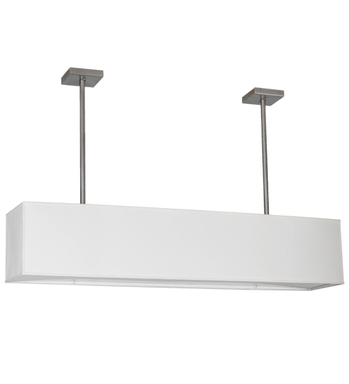 Rendering a stunning architectural look, this sleek linear lighting design features streamlined Cream Textrene that is enhanced with a Statuario Idalight bottom diffuser and hardware featured in a Nickel powder coat finish. The oblong 60-inch fixture is equipped with 48-inch suspension stems that can be shortened in the field to customize the distance from the ceiling. Ideal for illuminating dining tables, islands, bars, reception areas and counters. Handcrafted by master artisans in our 180,000 square foot manufacturing facility in Yorkville, New York. Custom designs, styles, sizes and dimmable energy efficient lamping options are available. UL and cUL listed for damp and dry locations.