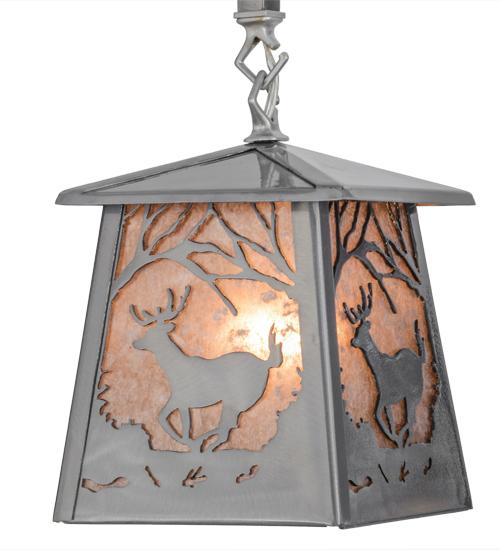 A stunning design depicts a Deer gracefully leaping through the lakeside woods as soft ambient illumination shines through Silver Mica in these three shades. Hardware and accents are featured in a Steel finish by Meyda artisans in our facility at the foothills of the Adirondack Mountains.