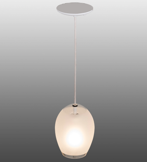 Designed for a clean distinctive look, this contoured shade features mouth-blown glass Frosted with Clear accents on the top and bottom. Enhanced with White finished hardware, this pendant can be suspended from the ceiling in multiples over a counter, island, bar or counter. Handcrafted in our 180,000 square foot manufacturing facility in Yorkville, New York. Custom colors, styles and sizes are available, as well as dimmable energy efficient lamping options such as LED. UL and cUL listed for damp and dry locations.