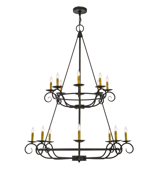 Exquisite grace and delicate beauty are blended to create a distinctive, elegant Grand Chandelier. A total of 16 Amber faux candlelights, each perched on a bobeche and scrolled arm, adorn two tiers of this luxurious chandelier. The decorative accents and hardware are offered in a stunning Antique Iron Gate finish. Perfect for a large entryway, lobby, banquet hall or conference room, this chandelier is available in a variety of finishes, styles, sizes and dimmable energy efficient lamping options such s LED. Custom crafted in the USA, Estrella is UL and cUL listed for damp and dry locations.