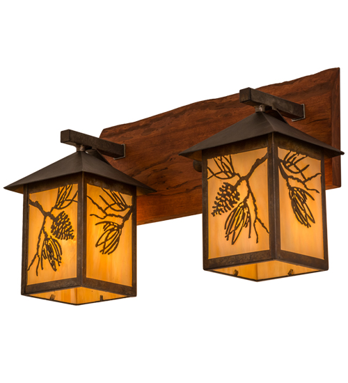 Stunning Balsam Pinecones and Pine needles are designed on brilliant Beige Iridescent shades, which are enhanced with steel frames and accents featured in an Acid Steel finish, and attached to a Natural Cherry Wood backplate. The wall fixture is ideal for illuminating corridors and other rooms. The luminaire is custom crafted by Meyda artisans in our manufacturing facility at the foothills of the Adirondack Mountains. Custom sizes, shapes, styles and dimmable energy efficient lamping options such as LED are available. UL and cUL listed for damp and dry locations.