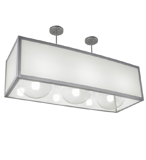Rendering a clean and stunning architectural look, this geometric design features a streamlined linear Statuario Idalight diffuser that reveals Clear glass globe styled lamps. The diffuser is complemented with Satin Nickel finished hardware. Custom crafted in our 180,000 square foot manufacturing facility in Yorkville, New York. Custom colors, styles and sizes are available, as well as dimmable energy efficient lamping options such as LED. UL and cUL listed for damp and dry locations.